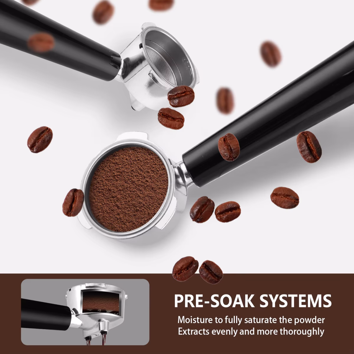 【تأكد من أفضل النكهات】: 20 بار هو الضغط القياسي لتحضير الإسبريسو ذو المذاق الغني، مع مضخة الضغط العالي، ضغط الماء على الفور من خلال مسحوق القهوة، مما يضمن جودة عالية للإسبريسو في كل مرة.
